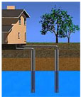 The Surface Water Closed-Loop system is extremely high in heat transfer efficiency. If there is a body of water located on your lot, such as a stream, river, or pond, this inwater installation may be the best route to take. Pipes are run underground to the water source where the loops run horizontally along the floor of the water source. Naturally, water has higher heat transfer capabilities than soil or rock, so this route is effective and recommended if possible. Geothermal OPEN LOOP SYSTEM